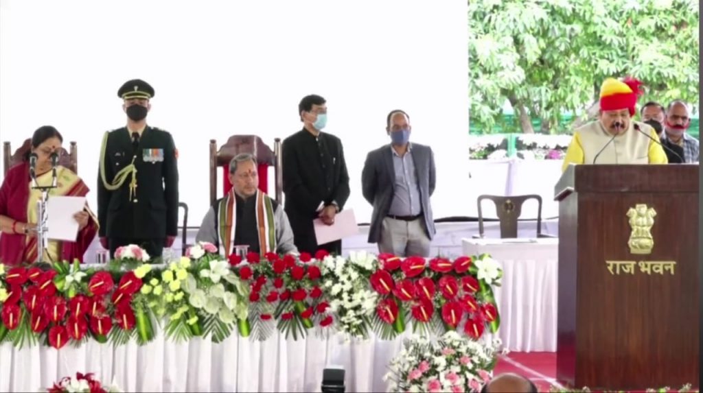 देहरादून | उत्तराखंड के मुख्यमंत्री तीरथ सिंह रावत के मंत्रिमंडल का विस्तार शुक्रवार को हुआ। राज्यपाल बेबी रानी मौर्य ने 11 विधायकों को पद व गोपनीयता की शपथ दिलाई। त्रिवेंद्र सरकार में खाली चल रहे कैबिनेट मंत्रियों के तीन रिक्त पदों को भी इस बार भरा गया है। मंत्रिमंडल में त्रिवेंद्र सरकार के कैबिनेट मंत्रियों को ही दोबारा जगह मिली है। मंत्रिमंडल विस्तार के बाद अब तीरथ सिंह रावत को विधानसभा का सदस्य बनना होगा। अभी वह पौड़ी से लोकसभा सांसद हैं। उनके लिए बदरीनाथ से विधायक महेंद्र भट्ट ने अपनी सीट छोड़ने की पेशकश की है।