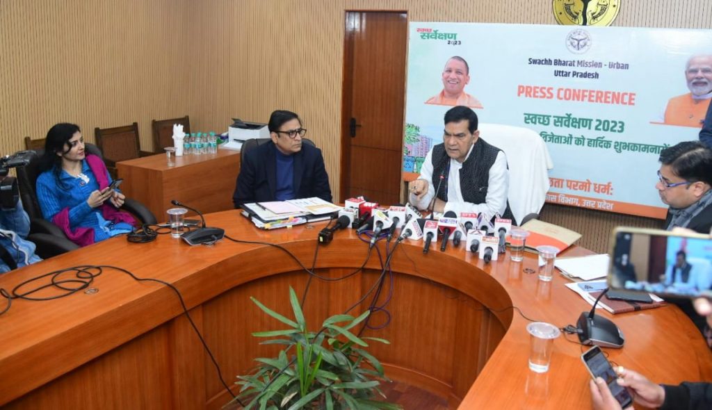 भारत के स्वच्छ सर्वेक्षण-2023 में यूपी के दो शहरों वाराणसी एवं प्रयागराज को पहली बार स्वच्छता के लिए सर्वाेच्च राष्ट्रपति पुरस्कार मिला है। स्वच्छता का राष्ट्रीय पुरस्कार पाने वाले देश के 10 शहरों में से 02 यूपी के ही हैं। गंगा टाउन सिटी में मिला यह सर्वोच्च पुरस्कार बेहद गौरवपूर्ण है। गंगा किनारे के शहारों की साफ सफाई करना बहुत कठिन कार्य है। जिसमें यूपी के दो शहरों को सर्वोच्च सम्मान मिला है। देश के उत्तर भारत क्षेत्र में प्रदेश के तीन अन्य शहरों बरवर, अनूपशहर, गजरौला को पहली बार क्षेत्रीय पुरस्कार भी मिला। विगत दो वर्षों में यूपी ने जीएफसी और ओडीएफ में बेहतर कार्य किया। यूपी ने कचरामुक्त शहरों (जीएफसी) में भी उत्कृष्ठ प्रदर्शन किया और स्वच्छता रैंकिंग में जबरदस्त सुधार हुआ है। ऐसे शहरों में पिछले दो वर्षों में 03 से 06 गुना की वृद्धि हुई है। साथ ही दो वर्षों में यूपी ने अपने सभी शहरों और कस्बों को खुले में शौचमुक्त (ओडीएफ) बनाने में भी बड़ी सफलता हासिल की है।