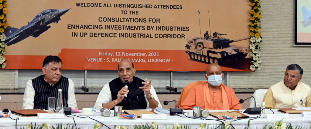 मुख्यमंत्री ने कहा कि प्रदेश में डिफेंस सेक्टर से सम्बन्धित एच0ए0एल0, ऑर्डिनेंस फैक्ट्रियां, भारत इलेक्ट्रॉनिक्स लिमिटेड आदि इकाइयां पहले से कार्यरत हैं। शोध और नवाचार को बढ़ावा देने के लिए आई0आई0टी0 कानपुर, आई0आई0टी0 बी0एच0यू0 सहित चार अन्य टेक्निकल विश्वविद्यालय मौजूद हैं। प्रधानमंत्री जी ने मार्च, 2019 में जनपद अमेठी में भारत-रूस के संयुक्त उपक्रम इण्डो-रशियन राइफल्स प्रा0लि0 राष्ट्र को समर्पित किया था।