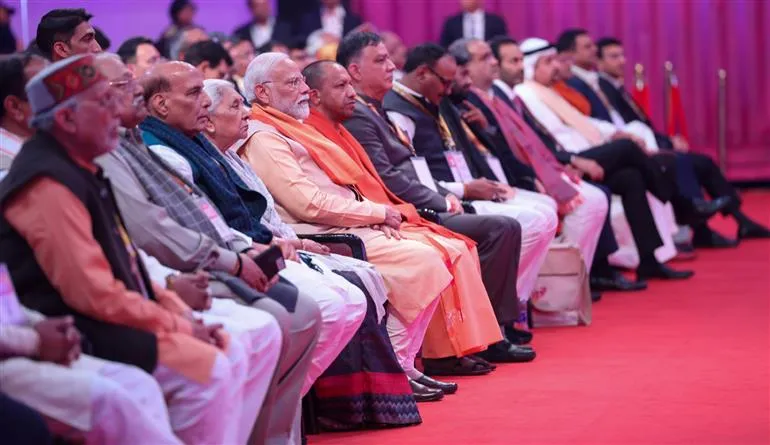 सभा को संबोधित करते हुए प्रधानमंत्री ने कहा कि आज का आयोजन विकसित उत्तर प्रदेश के विकास के माध्यम से विकसित भारत के संकल्प की दिशा में एक कदम है। विकास परियोजनाओं के बारे में बोलते हुए कहा कि यह उत्तर प्रदेश का चेहरा बदल देगा, और निवेशकों के साथ-साथ युवाओं को भी बधाई दी।