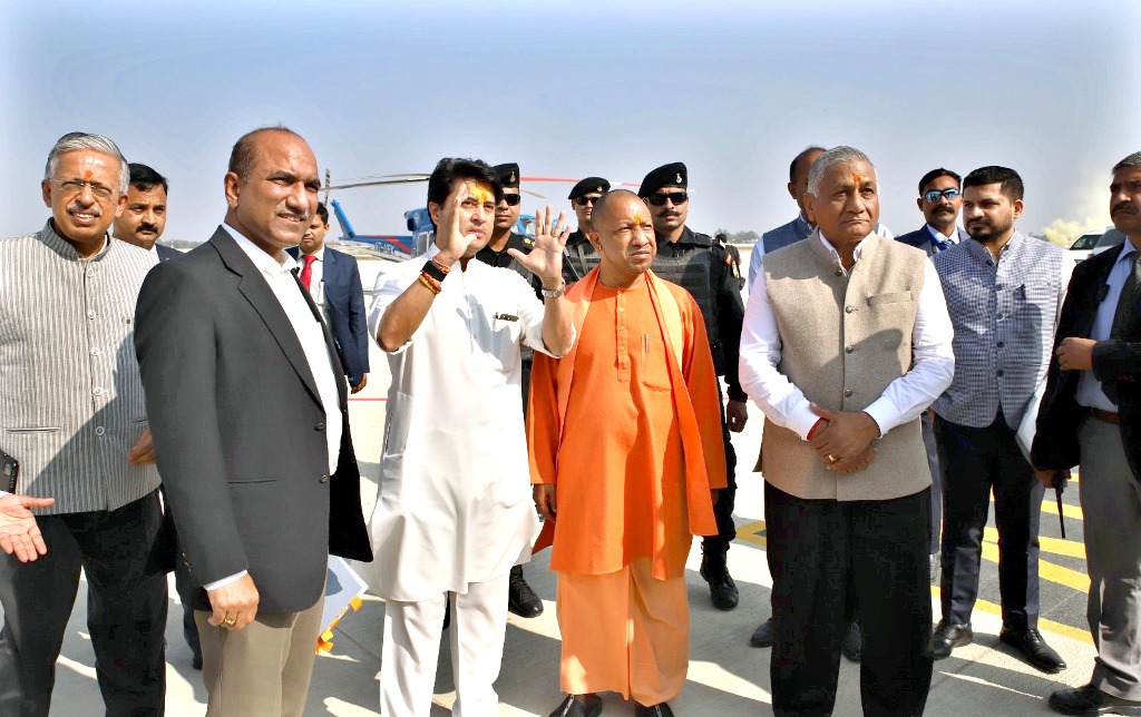 मुख्यमंत्री आज केन्द्रीय नागर विमानन मंत्री श्री ज्योतिरादित्य एम0 सिंधिया एवं केन्द्रीय नागर विमानन राज्य मंत्री जनरल (सेवानिवृत्त) (डॉ0) वी0के0 सिंह के साथ जनपद अयोध्या में निर्माणाधीन मर्यादा पुरुषोत्तम श्रीराम इण्टरनेशनल एयरपोर्ट के निरीक्षण के उपरान्त मीडिया प्रतिनिधियों को सम्बोधित कर रहे थे। इसके पूर्व, मुख्यमंत्री तथा केन्द्रीय मंत्रियों ने एयरपोर्ट के कार्यों के सम्बन्ध में सम्बन्धित अधिकारियों के साथ समीक्षा बैठक कर आवश्यक दिशा-निर्देश दिये। इस अवसर पर अयोध्या के विभिन्न विकास कार्यों एवं निर्माणाधीन एयरपोर्ट में भूमि अधिग्रहण सम्बन्धित सभी प्रक्रियाओं के सम्बन्ध में प्रस्तुतिकरण किया गया। साथ ही, सुरक्षा व्यवस्थाओं के सम्बन्ध में जानकारी दी गयी।