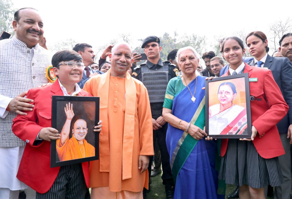 राज्यपाल एवं मुख्यमंत्री को प्रतीक चिन्ह भेंट कर स्वागत किया गया। राज्यपाल एवं मुख्यमंत्री को जनपद बागपत के प्रगतिशील किसान श्री जय देव सिंह ने स्वयं उत्पादित शहद तथा जनपद बाराबंकी के किसान श्री अमरेन्द्र प्रताप सिंह ने स्वयं उत्पादित स्ट्राॅबेरी भेंट की। स्कूल के दो विद्यार्थियों ने राज्यपाल एवं मुख्यमंत्री को उनकी पेंटिंग भेंट की।