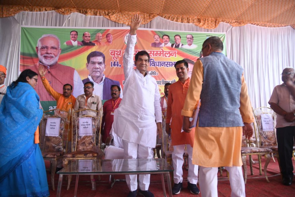 धौरहरा लोकसभा सीट से भाजपा प्रत्याशी रेखा वर्मा के लिए आयोजित बूथ अध्यक्ष सम्मलेन में शामिल हुए मंत्री ए.के. शर्मा